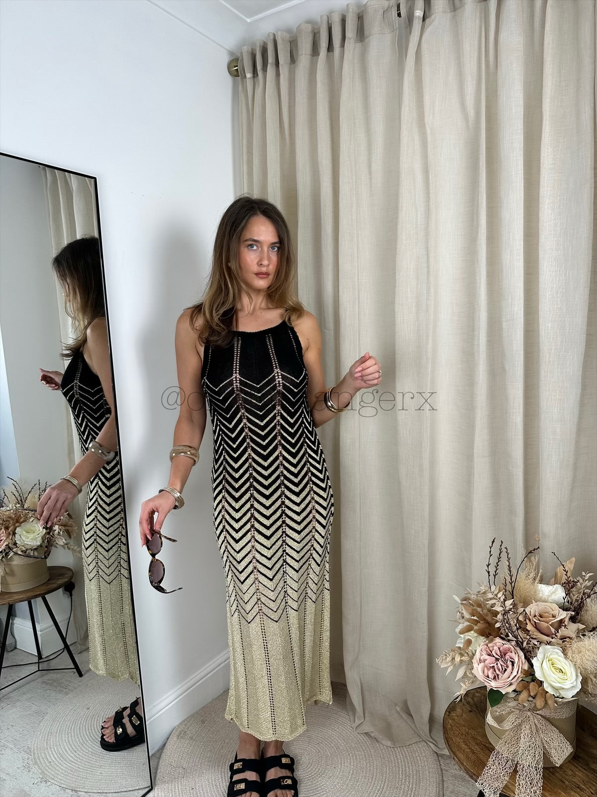 The super stretchy knit fabric, woven with gold lurex thread, not only offers a flattering fit but also unbeatable comfort. Dress it up or down, it's perfect for any occasion.