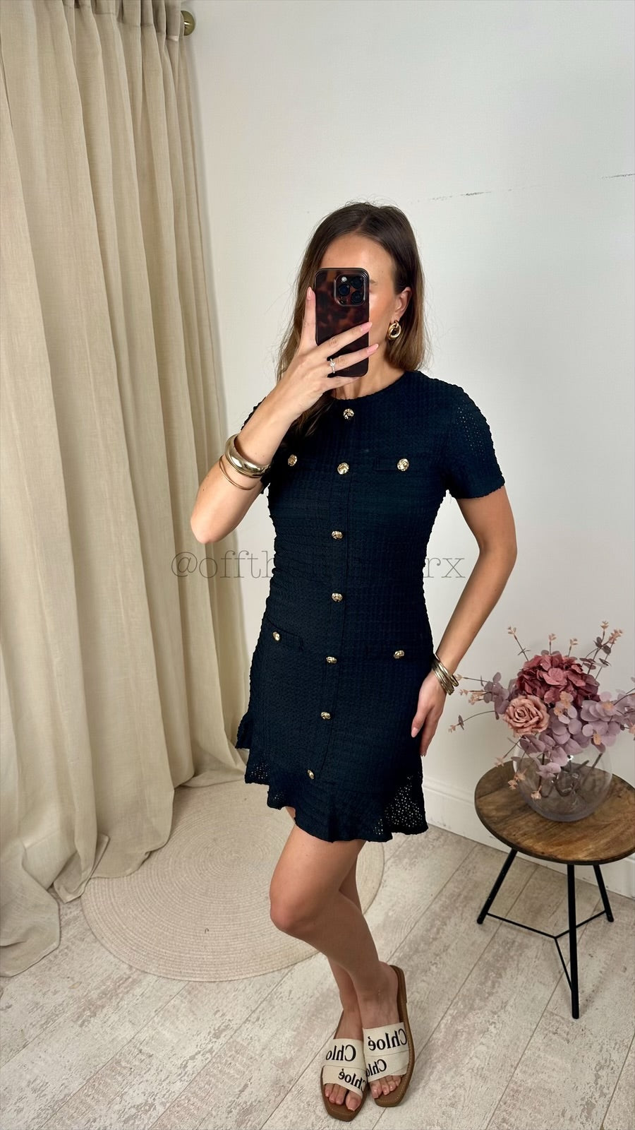 Step into summer with the Meghan Military Button Dress—your new best friend for workdays! Its stretchy, comfy fabric keeps you feeling free and fabulous, while the easy-to-style design means you can mix and match with a wink. Who says office wear can’t have a little fun?