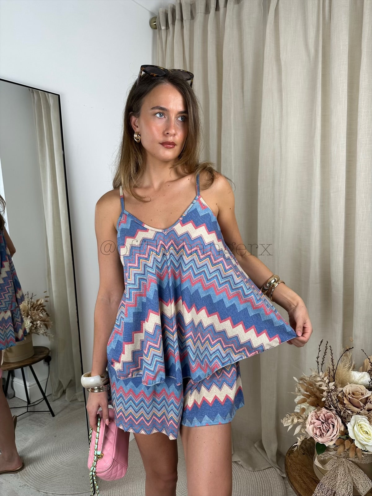 Shimmer your way through your holiday with the Samantha Lurex Strappy Short Set. This super comfy set features a playful lurex thread and high waist elasticated shorts for maximum comfort. Perfect for lounging or exploring, it's a must-have for your next vacation.